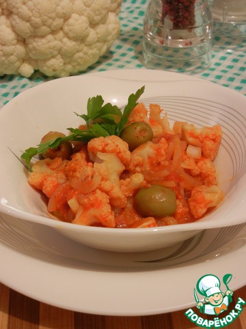Следующий отчетик по Фокачче с беконом и кукурузной мукой от Лесеньки http://www.povarenok.ru/recipes/show/77584/. Фокачча получилась очень вкусной, но начинки мне показалось мало  в следующий раз увеличу ее количество. Ну и без отсебятины, конечно же, не обошлось, я не смогла удержаться и добавила немного пармезана. Лесенька, спасибо большое за рецепт!!!  Следующий мой отчет по рецепту Цветная капуста с оливками в томатном соусе http://www.povarenok.ru/recipes/show/74421/. Моя любовь к цветной капусте "проснулась" буквально год назад. Готовлю ее достаточно часто, но разнообразием приготовления похвалиться особо не могу. Поэтому я приготовила всего половину порции, и скушала в один присест. Мне очень понравился этот рецепт, буду готовить его и в дальнейшем. Ларочке моя большая благодарность "за открытие" для меня в "новом свете" цветной капусты!