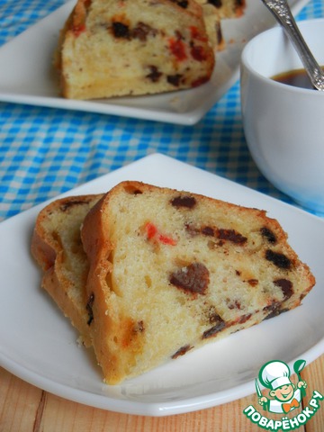 И, конечно же я не могла прости мимо Викулиного рецепта Куриные голени с тушеной капустой http://www.povarenok.ru/recipes/show/38834/На 100% была уверена, что это наше блюдо. Потому, как я уже говорила Викуле, готовлю похожую капустку, только без добавления томатной пасты и со свиными ребрышками. Такой вариант нам тоже очень понравился  Следующий на очереди Творожный кекс с шоколадом и сухофруктами от Леночки http://www.povarenok.ru/recipes/show/77161/Кекс получился очень вкусным и по достоенству оценен всеми домашними. В качестве начинки добавила изюм, чернослив, вяленую вишню и молочный шоколад.