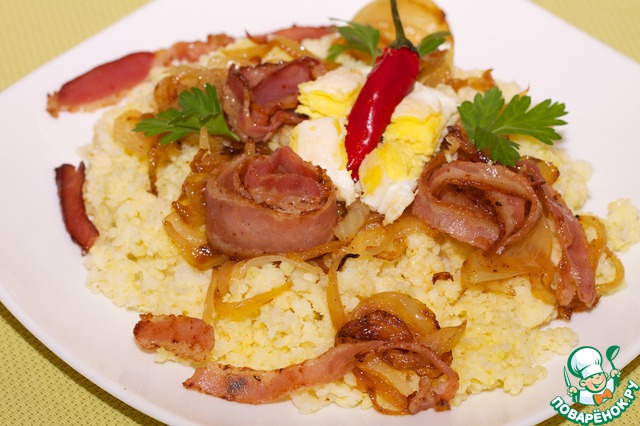 Аленка, спасибо за похвалу и внимание! "Каша пшённая "Дембельская" от Светы!Очень вкусная каша: жареный лук, бекон добавили приятный аромат и вкус, а яичко - сытость! Покушали с удовольствием!