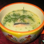 Ингредиенты: Вода, Лосось, Лук репчатый, Картофель, Перец черный, Сливки, Мука пшеничная, Соль, Масло сливочное, Укроп.