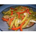 Ингредиенты: Мякоть свинины, Перец болгарский, Огурец маринованный, Томат, Масло растительное, Соль.