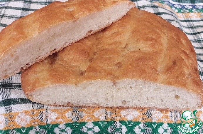 Вкусный хлебушек! На 500 г муки воды ушло меньше. Сформировала лепешку, такая хорошенькая получилась! Но при выпечки … полоски куда-то «сбежали»! Воздушный хлебушек! У него хрустящая необыкновенная корочка снизу! Тааак вкусно!